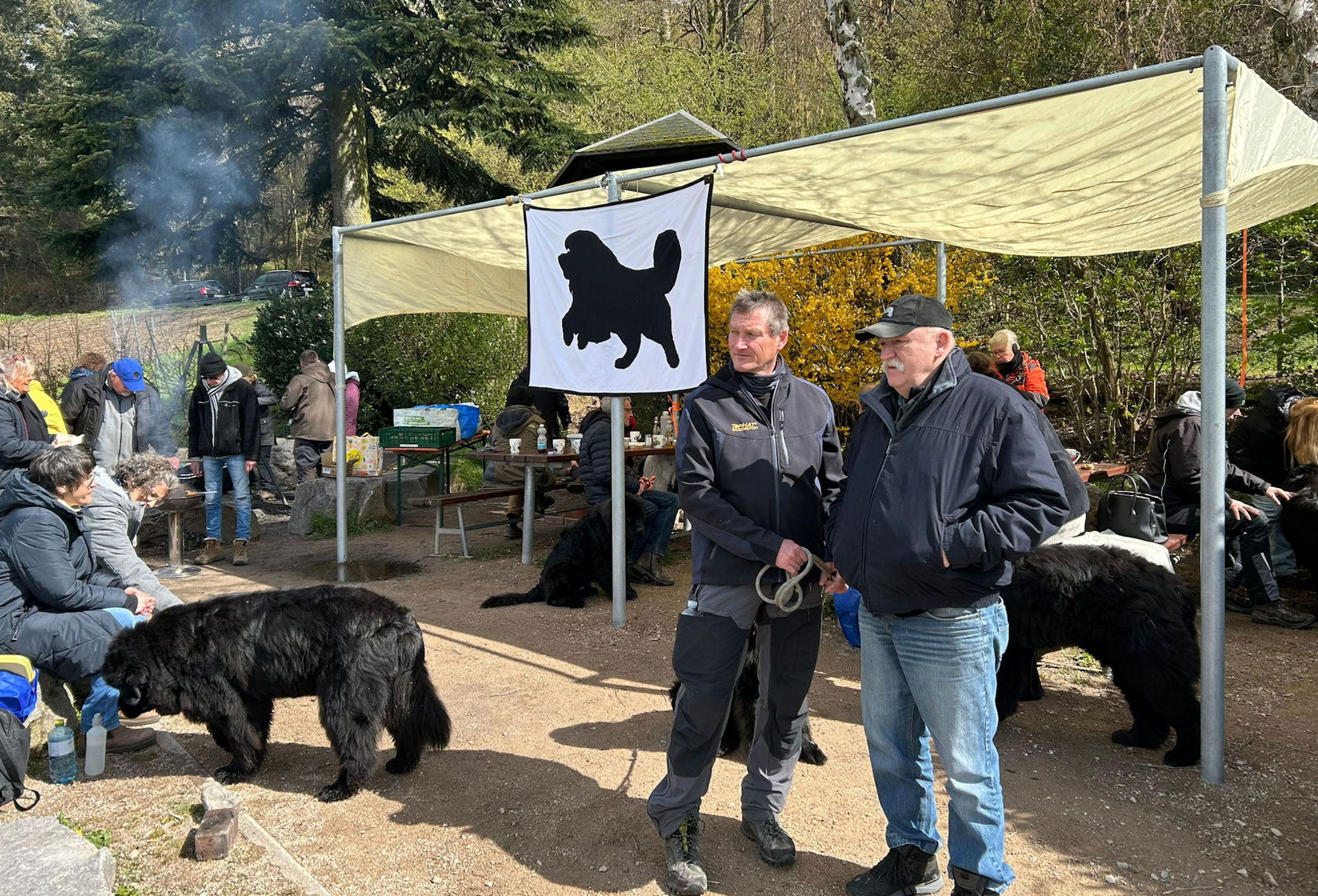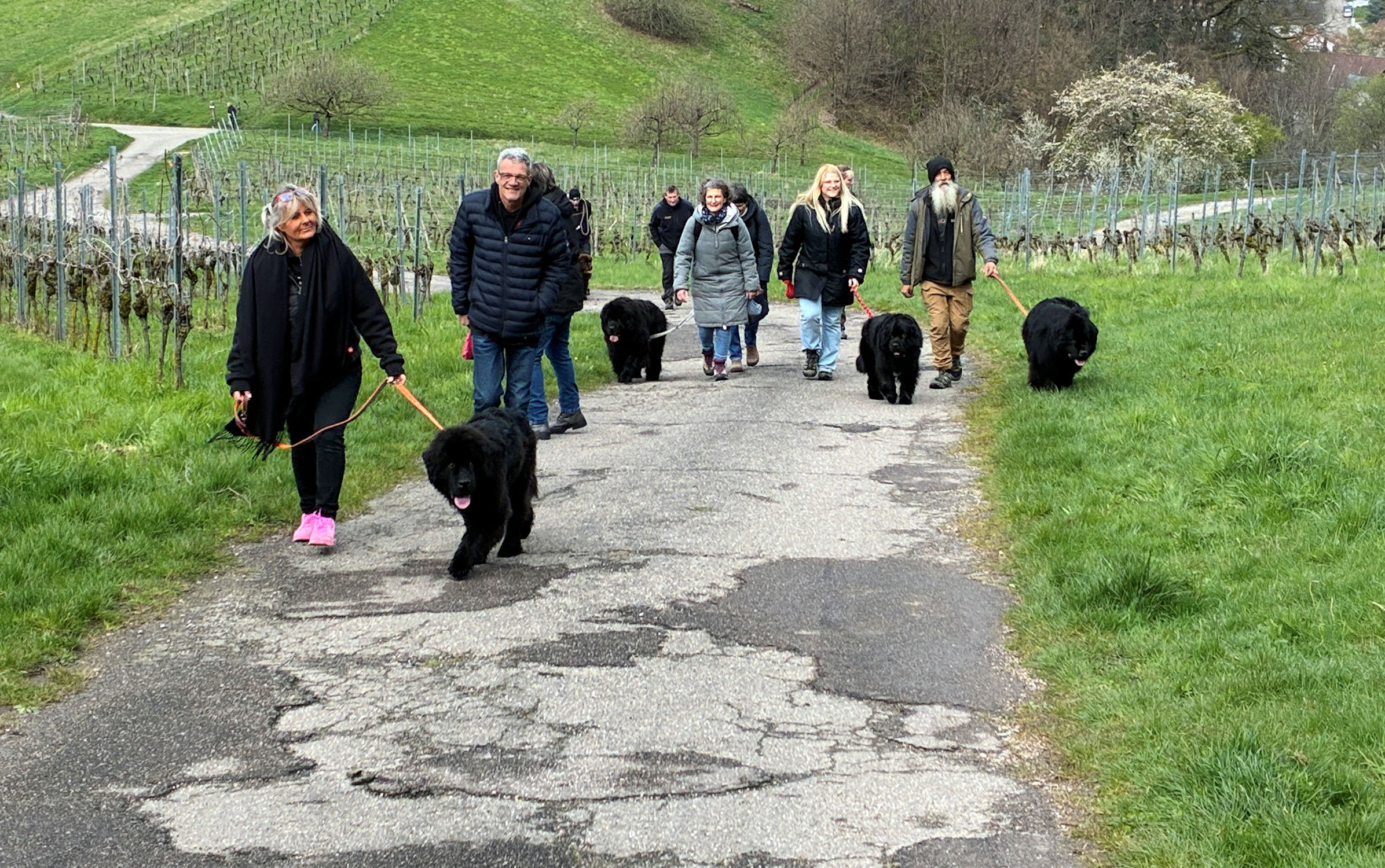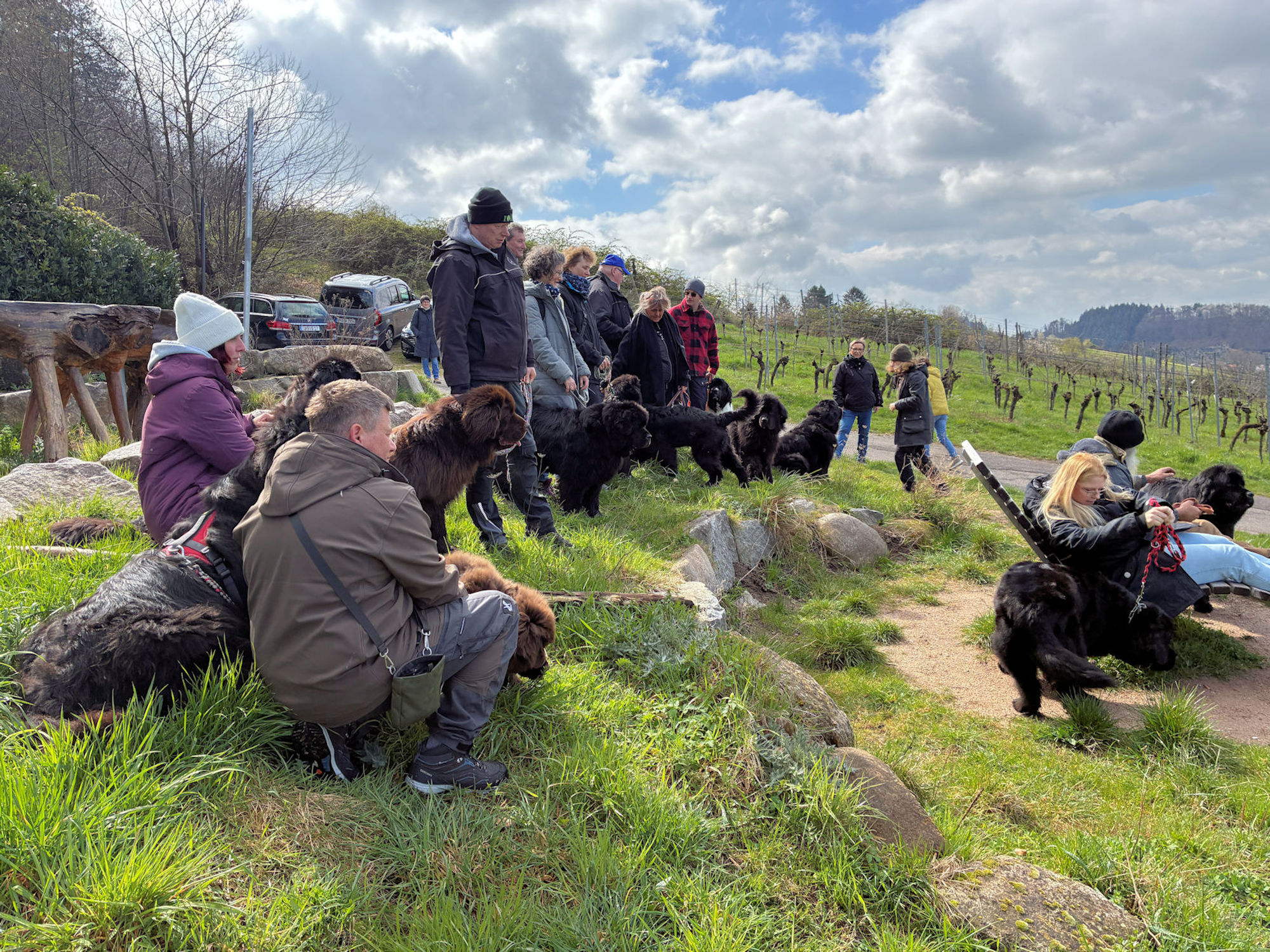 30 Zwei- und 25 Vierbeiner – der traditionelle Spaziergang am Ostermontag der Landesgruppe war wieder mal gut besucht. Neben vielen Neufis waren diesmal auch 1 Dogge, 3 Landseer , 1 Boxer und 1 Bullterrier mit am Start.